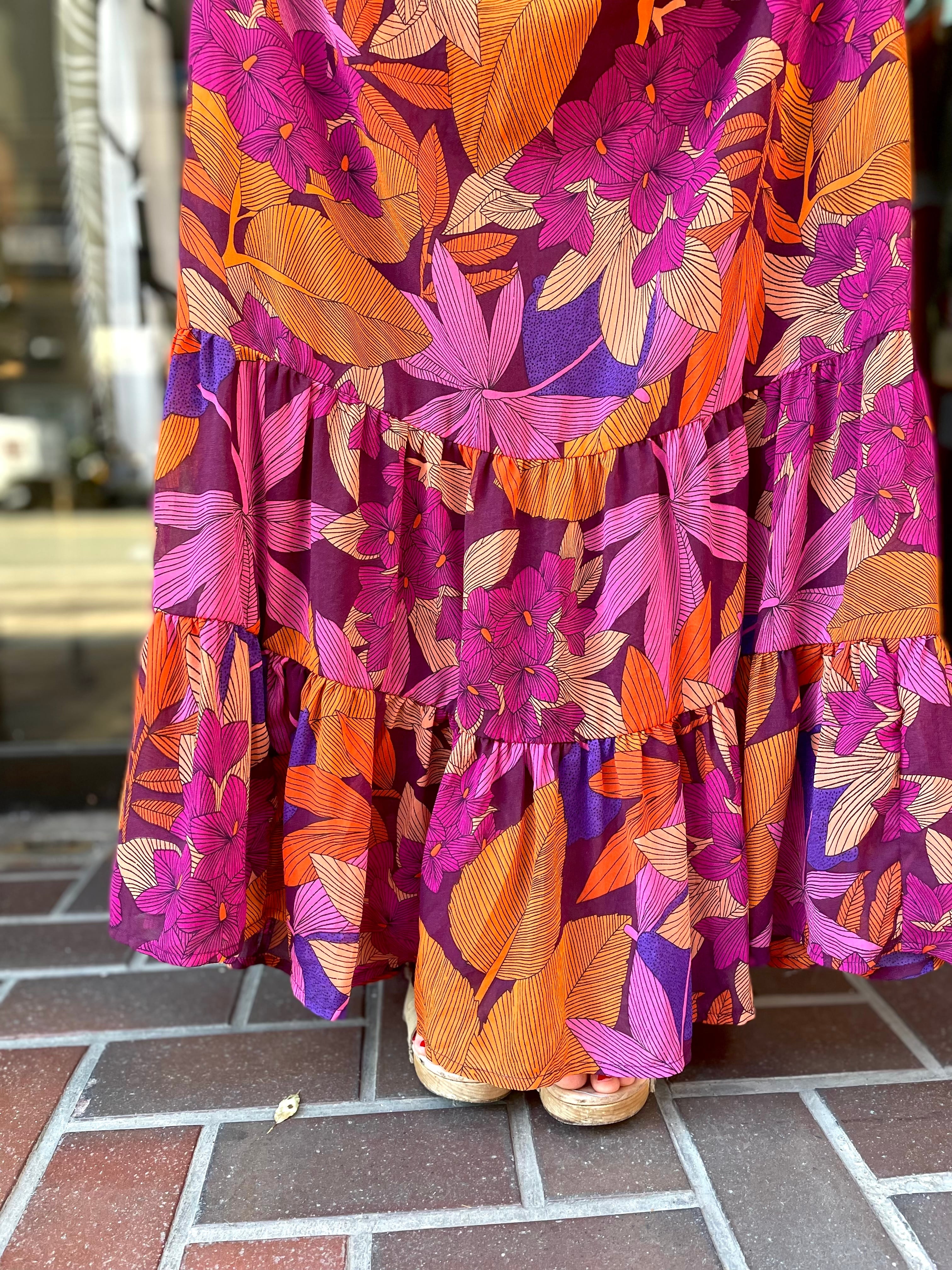 レッド、オレンジ系の花の総柄