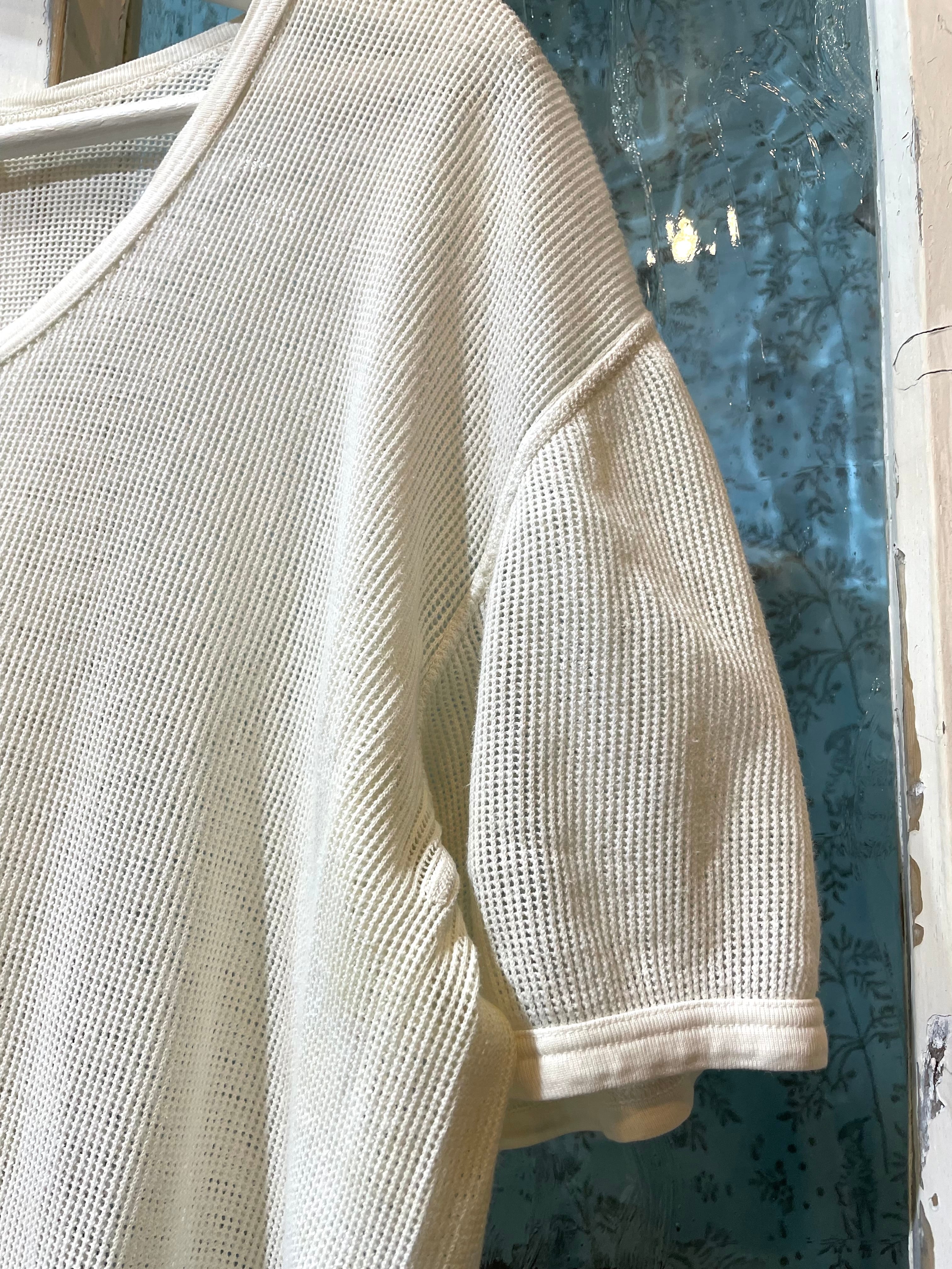 白のメッシュティシャツです。