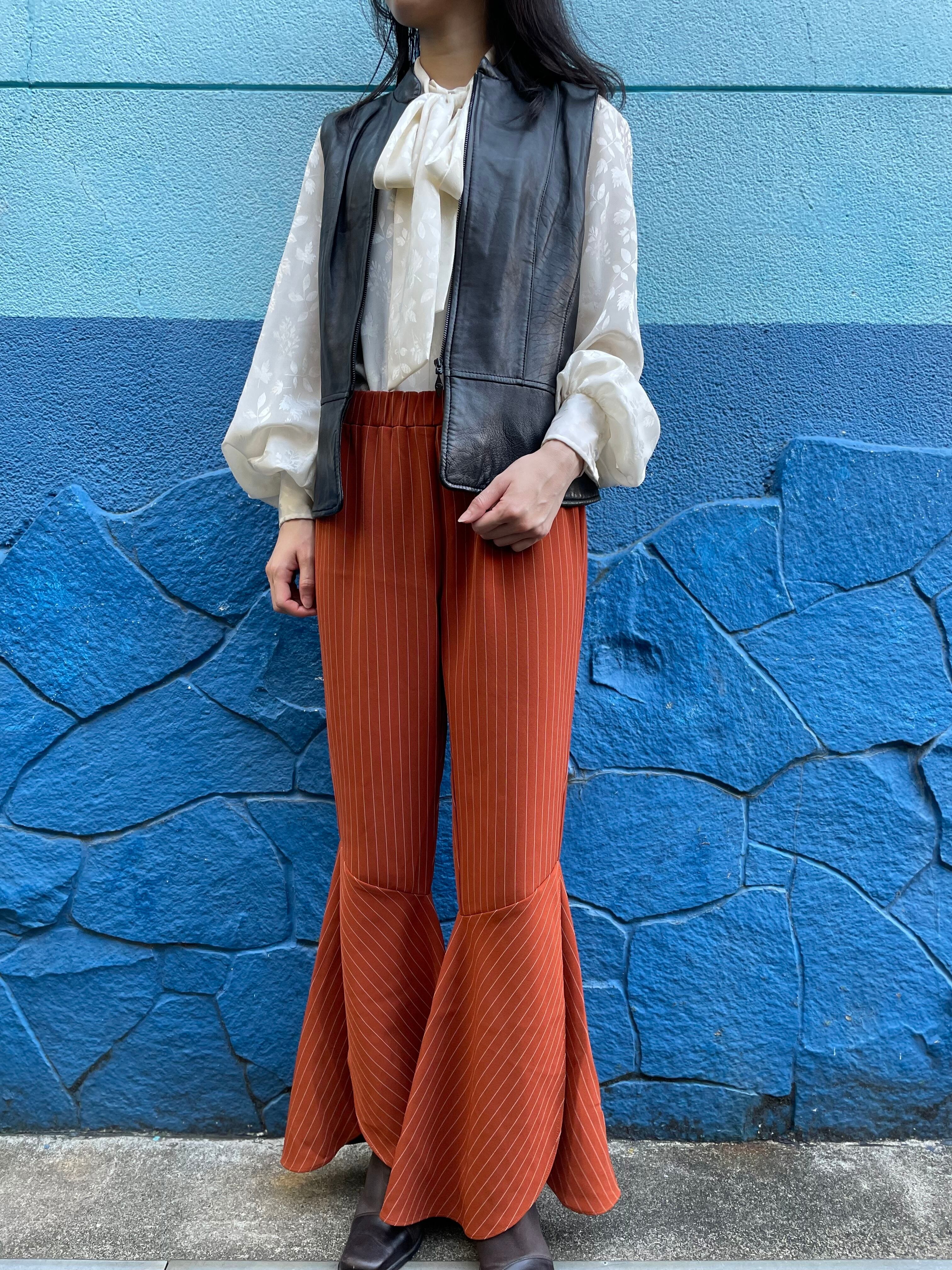 Orange stripe flare pants
